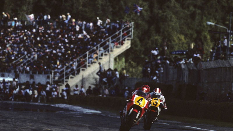 The next year, the Californian racing legend and the fresh-faced newcomer from Louisiana made the 500cc class their own, taking their battle to the very last lap of the last of 12 rounds. Just to make it really tense, it was to be Kenny's last ever GP.