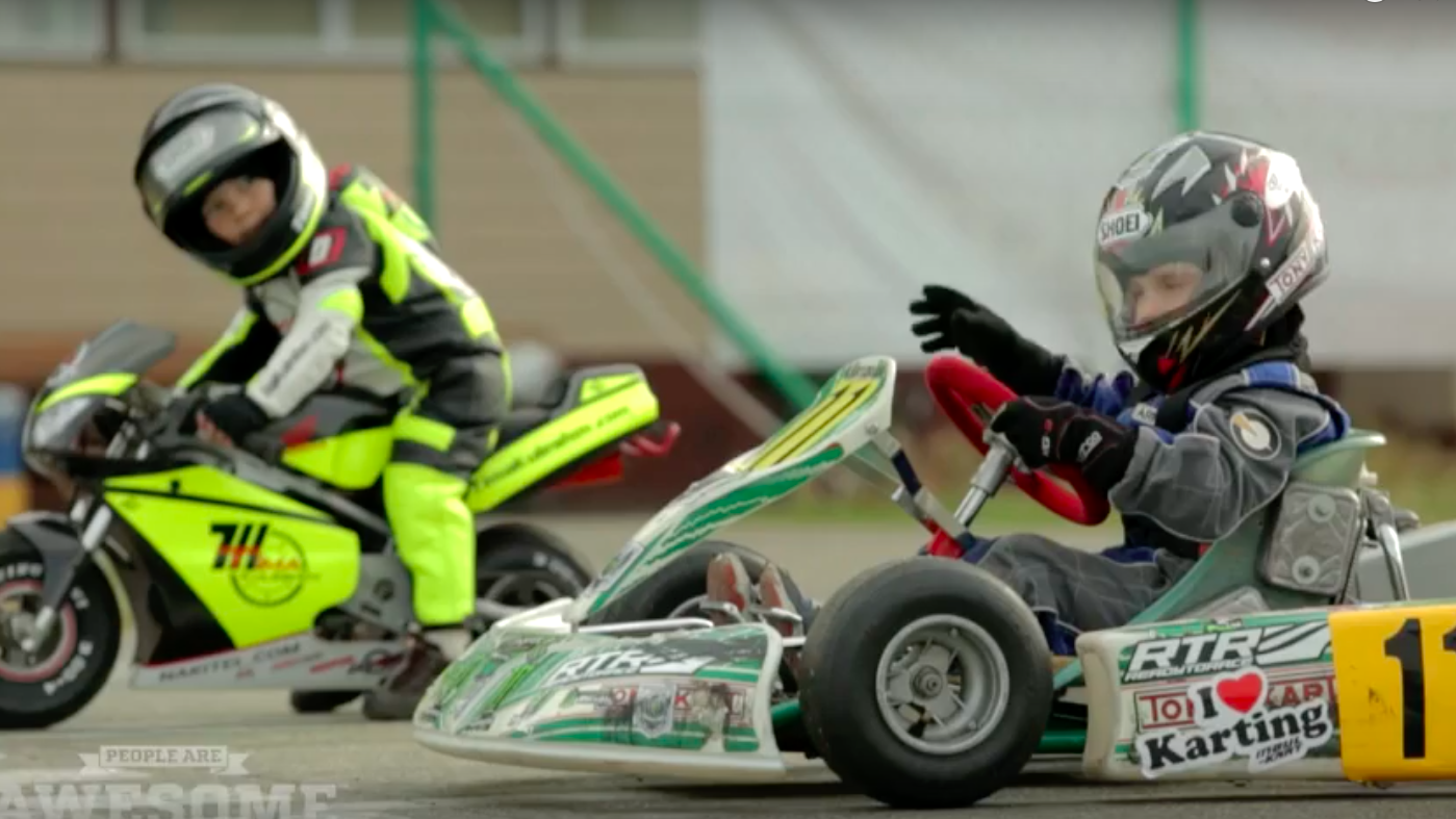 2-year-old Motorcyclist races 4-year-old GoKart driver