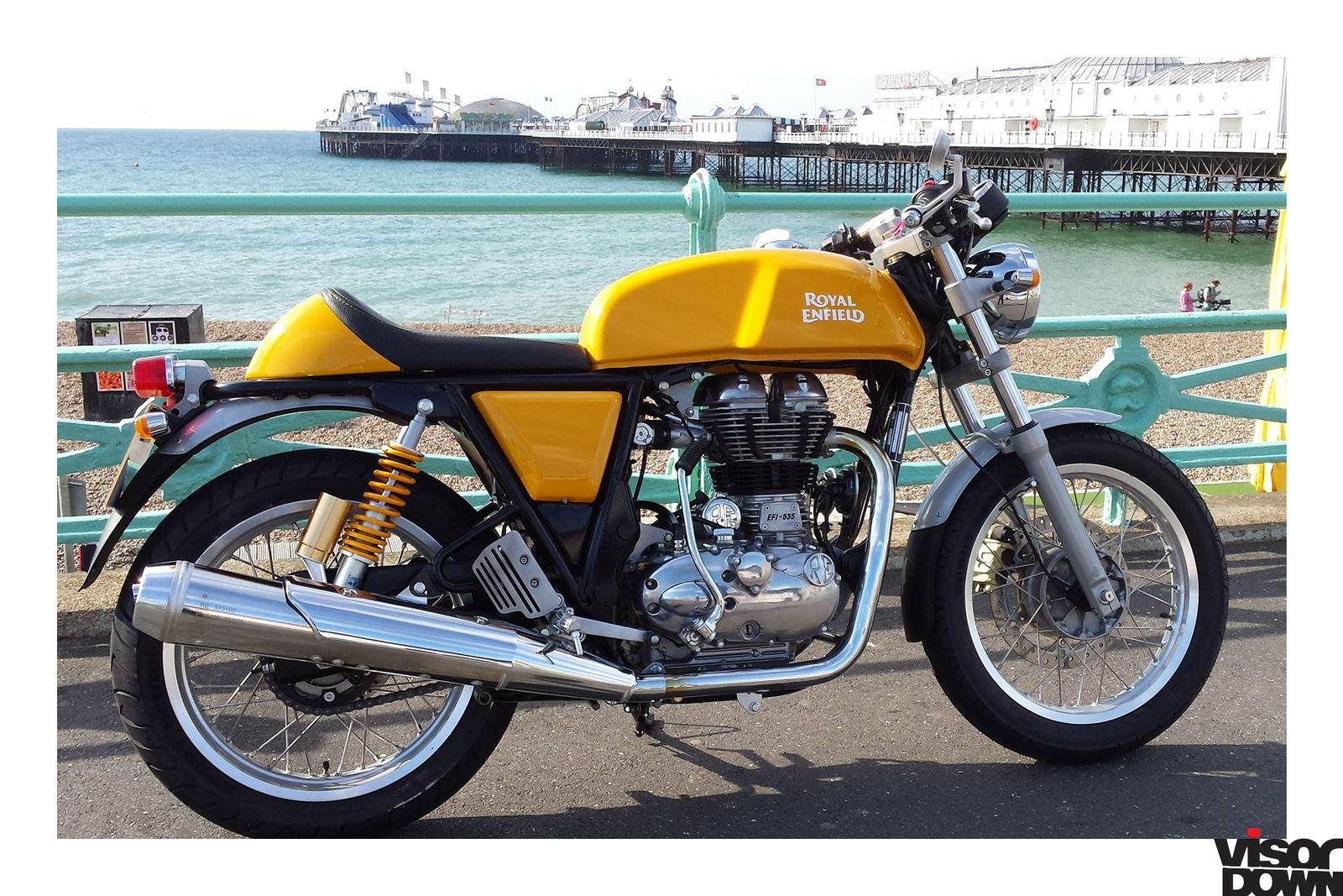 There’s no pretending the Royal Enfield Continental GT is not a good-looking machine. That classic horizontal line made by the frame tubes and tank. The simple one-colour paint job. That café racer bum stop. Those piggyback shocks in a similar shade of gold to Öhlins.