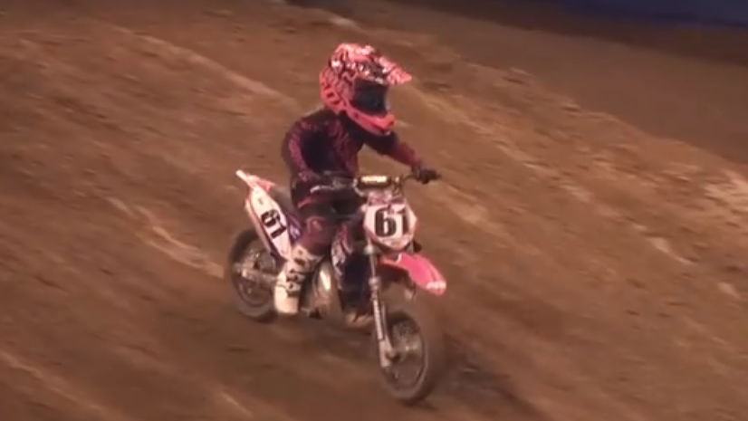 Little Lahna MacNeil won over thousands of race fans at a recent Arenacross show in Wilkes-Barre, Pensylvania, when she refused to let a few tumbles stop her from finishing her race.