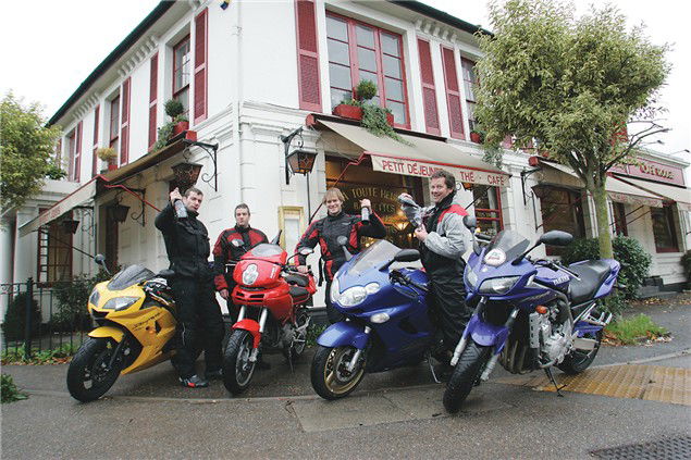 It's not the first time he's ignored the rules. The plan was to put our hands in a hat for our keys. Wozza put his hand in alright, before the rest of us, took the bike he fancied and told us which we were riding. About as democratic as a central African election.Martin got the ZZ-R1200 because it's the only bike with panniers and therefore the logical choice for a snapper and his weighty gear. Adam was given the Multistrada because there's no point in having a dogsbody if you don't give him the crap jobs. I get the Fazer Thou - not a bad result. Plenty of grunt, a fairing to keep the worst of the wind off my weedy chest and a decent chassis. The only snag is this Fazer has been stood around and has some snot in the pilot jets that makes it run as a 500cc parallel twin below five grand. But it's not a disasterbecause, apart from boarding the Eurostar at Calais, this'll be a wide-open run.