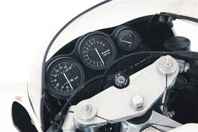 The KR-1 had a parallel twin, liquid-cooled engine with case reed induction and Kawasaki's KIPS (Kawasaki Integrated Powervalve System). It punted out a healthy 52.5bhp, weighed in at a measly 123kg and reached an astonishing 131mph (the KR only managed 112mph). The KR-1 had awesome acceleration and the fastest top speed of any of the 250cc two-strokes in production at that time. It was the closest thing to a race bike that Kawasaki had ever built for the road. It boasted a huge, lightweight aluminium frame that wouldn't look out of place on a 500cc bike, state of the art brakes with semi floating discs (think today's radial brakes and that's how trick they were), adjustable suspension, low-profile tyres and a cassette gearbox to whip out should you need to tweak the gear ratios for the race down the chippy.
