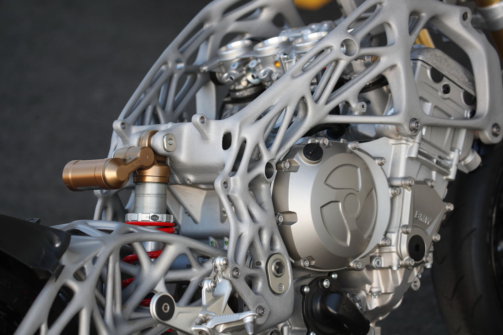 The frame is an amazing thing - although it's really just for show. No-one has ridden the bike with it, and it would be a massively expensive way of making a frame. BMW used a machine costing nearly £1m to build it, and it took five days...