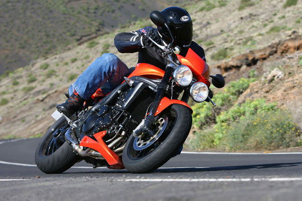 Based on Daytona 900 but unfaired, with bold black, tallow or orange paint, special badging and white-faced clocks. A few Speed Triple 750s were also built.