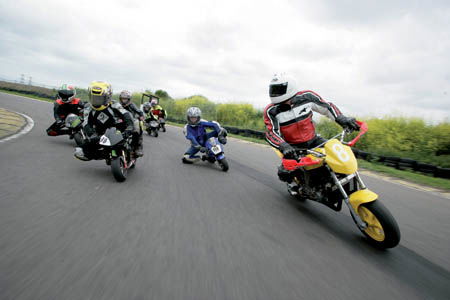 The level of riding throughout all the confusingly complex minimoto classes is equally spellbinding. Watching the fastest kids through left/right/left complexes is incredible. Their inputs are so precise and so forceful that it all seems to be happening in a speeded-up film. Are they fast? They're rude fast. Filthy rude. Anyone who doesn't believe that Britain hasn't got talent should come to one of these events. It's just the system that stops them going all the way - that, and the big-money lure from karting. The hot money seems to be on riding both classes for the extra track time and the experience that offers, so we decide to scour the paddock to meet the hard chargin' culprits.
