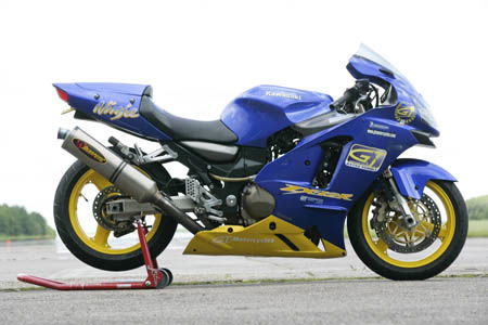 Mike's 200mph ZX-12R was built four years ago. Since then Mike has done hundreds of runs at 200mph or more on this very bike. It's not turbocharged and all the bike has had in that time has been oil and filter changes, and clutch plates. Brian Capper who built the engine was reluctant to divulge too much about what he had done to the engine, but blue-printing, balancing, and a fat fuel injection system are definite. Power is around 210bhp.