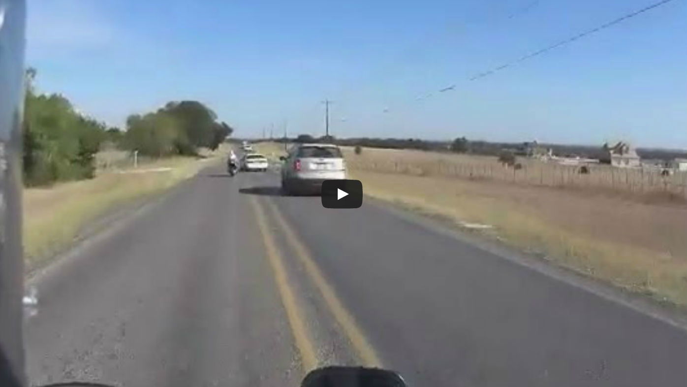 A DRIVER is caught swerving into an overtaking motorcycle, then saying ‘I don’t care’ in this helmet camera footage from Texas.