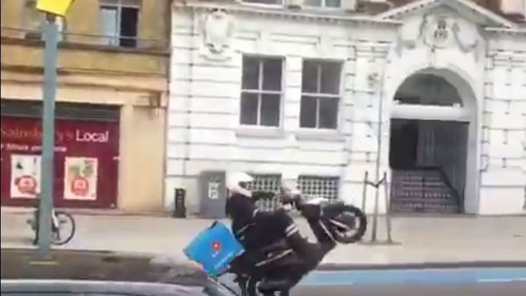 DOMINO’S Pizza says it’s investigating after this video of one of its delivery riders pulling a wheelie past a speed camera was posted on Twitter.