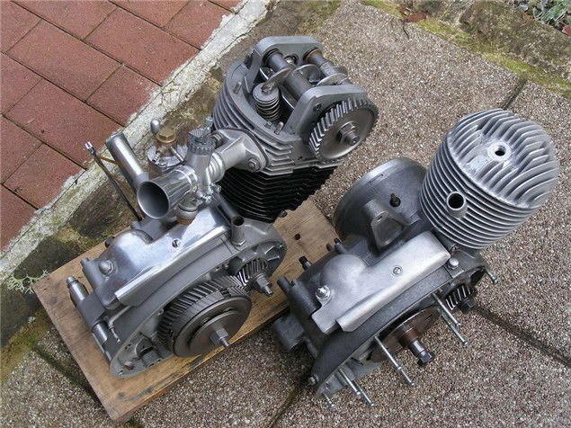 But, weirdly, the same bottom end could carry either a two-stroke or four-stroke top end, giving the manufacturer two bites at the apple. The two-stroke is less pretty...