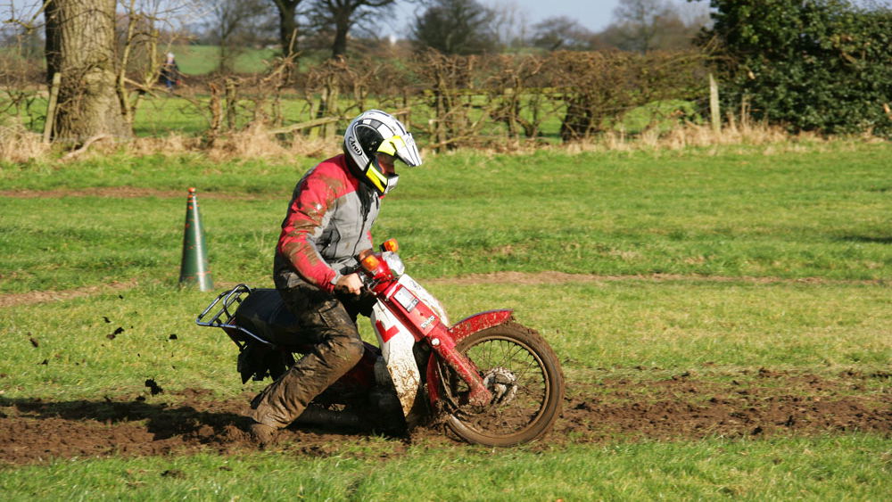 My approach came from my club racing days, when with no money one had to take the psychological offensive. This involved applying stickers of performance products to your machine. The opposition then believed you were fully sponsored, so were quite often beat before they started. Hence my C70 sported Rizla and Yoshimura logos lulling the opposition into thinking I was a factory rider. Obviously, I am now a retired old man but none of them realised this. On the day my 72cc provided the least power and speed on the longer straights and bottomed out in the deep ruts. However, I’m still convinced my mind games and ‘slowly, slowly catchy monkey’ approach was what brought home the bacon. And did I have fun on the day. This is what bikes are about!