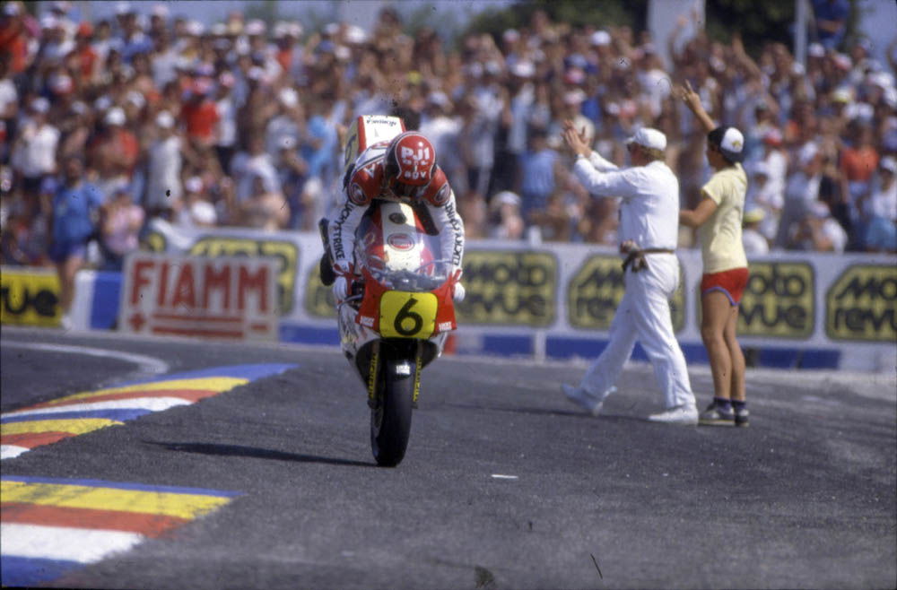Whitham was taking the whole thing far too seriously and just disappeared into the distance on his written-off Spanish crapper. Mackenzie matched him through the corners, but had to give in on the straights to Whit’s sky-rocket 11bhp. Hogan’s efforts had been reduced to fixing his chain and exhaust every half-lap and getting in peoples way until they fell off again. Niall and Whit pulled away from the crash-hungry Cantlie, whose prediction that C90s were indestructible came true. In the end, Mackenzie pipped Whit with 17 laps, Cantlie cranked 15 laps out of his crashathon, Urry somehow managed 11 laps and Hogan with his KH pushed by the flag for six. Barry was nowhere but hey, he did look good in his Brad Lackey face-mask.