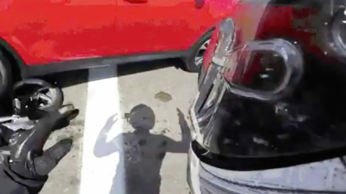 WE see idiot drivers occasionally cut-up or 'SMIDSY' motorcyclists from time to time. But to f*ck up to the extent you're in a keep clear zone and then reverse with enough speed to crush the motorcycle waiting at the traffic lights behind you is impressive. Luckily, the rider spotted the reckless car reversing early enough and was able to jump off his bike and aboid the same fate as his bike.