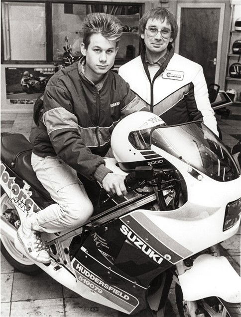 Jedward had nothing on me. I was ahead of my time! Steve, a local bikeshop owner bought me this Suzuki Gamma to race at the TT in 1986. Can you believe this shot went in our local paper!