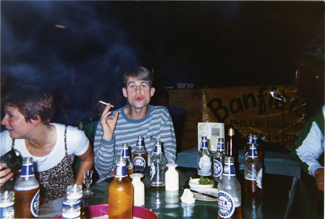 Having a social fag at the end of season bash in Phillip Island 1994. You can tell from how I’m holding it that I don’t really smoke. This was seven months before I was diagnosed with cancer and I’m already ominously thin.