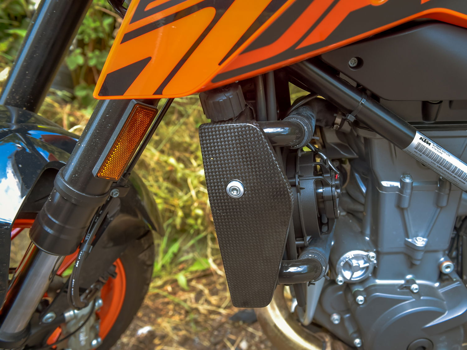 At first glance, the Duke in my garage didn’t look much different from the one I’d dropped off at KTM’s Silverstone HQ a couple of weeks earlier. But on closer inspection I noticed a cluster of carbon and a couple of tidy additions.