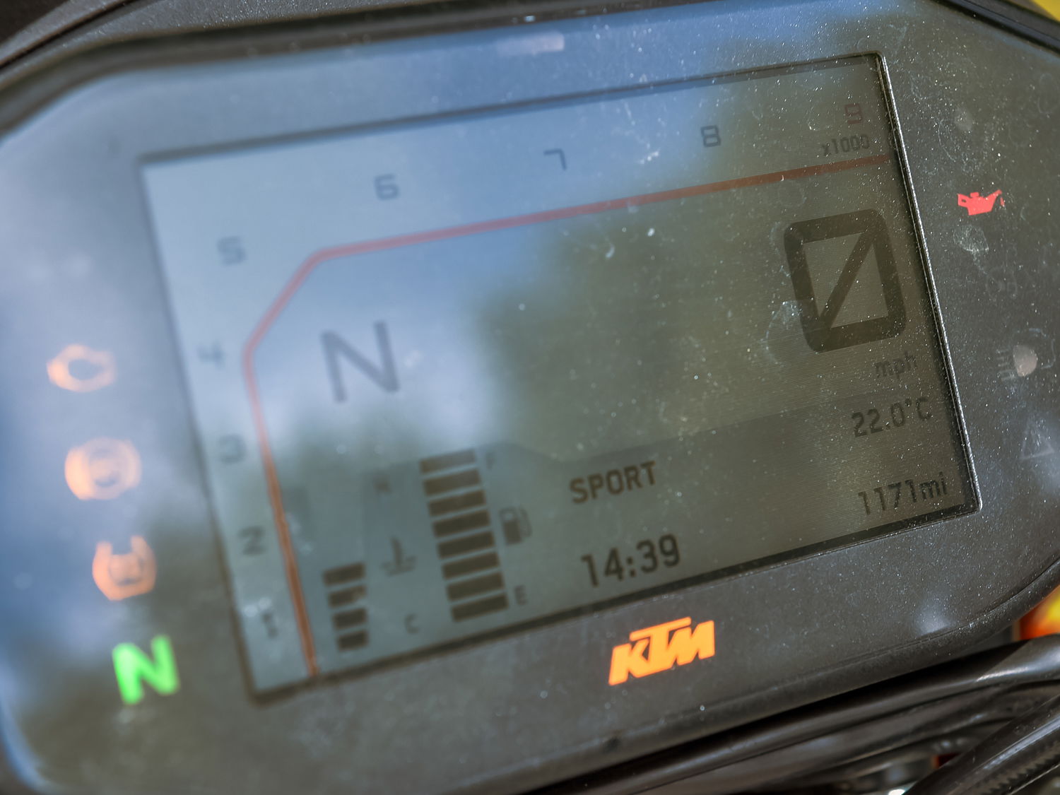 We’re now two months and nearly 1,200 miles in, and the Duke continues to delight at every opportunity. We’ve done a couple of longer trips – 300 miles of motorway on a single cylinder, unfared bike is no mean feat – but the rest of the miles have been made up of ambles around my native Hampshire. I say ambles, but what I mean is mad hooligan-esque dashes – you can’t really do anything else on a Duke.