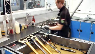 Here, K-tech technician Michael is stripping down and rebuilding a 20mm DDS cartridge kit fitted to a Yamaha R6.