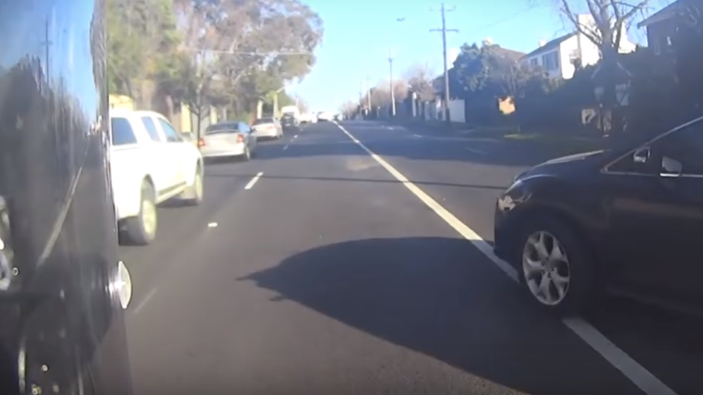 Both driver and biker brake in unison to avoid a collision in this week's Monday Motorbike Mayhem, causing a strange effect...