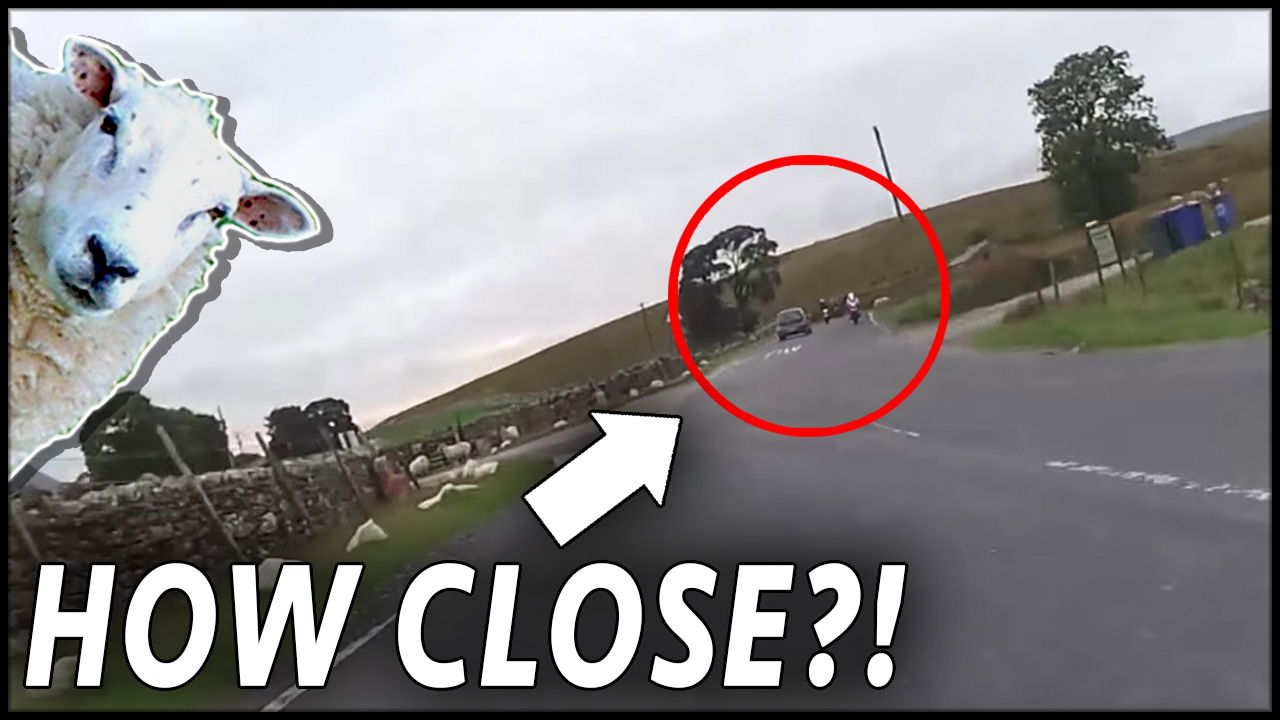 OUT OF nowhere a speeding LAMBorgini races across the front of this motorcycle in a very near miss situation.