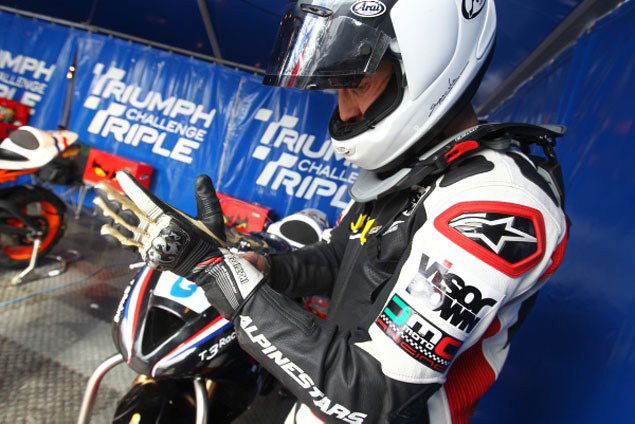 That’s the great thing about the Triumph Triple Challenge; the engines are sealed, so there’s little you need to do to the bike between rounds, maybe change the gearing or adjust the suspension, but in reality, there aren’t any midnight engine strip-downs in this series and that suits a self-confessed spannerphobe like me, down to a T-bar.