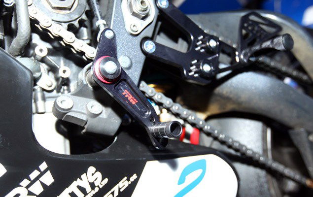 Curly gets to work and switches the linkage for one from a Fireblade and try as we might, we couldn’t get the lever to flip-under, even with the most lead-footed gear change. Job-jobbed as they say.