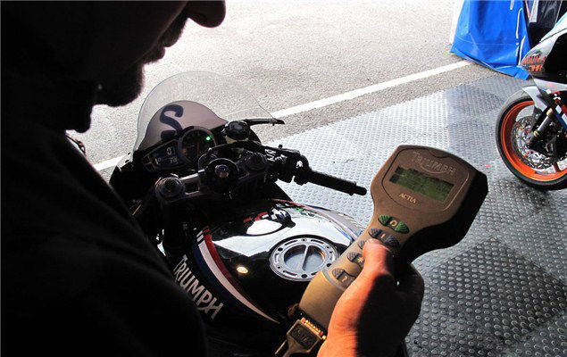 With everything swapped over, the bike gets run on the dyno and the problem rears its head again. The can-do attitude in the Triumph tent doesn't falter at the thought of taking the bike to pieces again. I feel like an imperial spanner in a box of metric nuts; I have the least amount of knowledge of the bike and questionable mechanical ability, so I wish the ensemble luck and make a swift exit.
