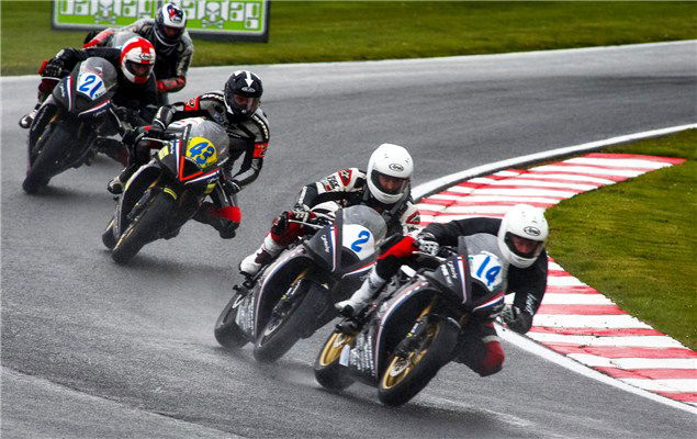 I can barely see anything but know I need to brake harder than I have all lap. I squeeze as hard as I dare, all the time expecting the front to fold, but it sticks. As we approach Clay Hill, the fast uphill left-hander, I feel apprehensive for the first time; it’s scary enough in the dry. There are three bikes infront of me as the leaders fire over Clay Hill.