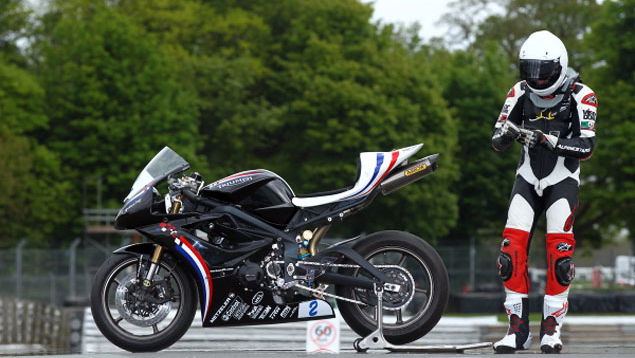 My first experience riding the TTC Daytona 675 is taking it to scrutineering, a heady 200 metre run, where you spend your time trying to avoid dozy BSB fans who consistently look surprised they’re having to move to the side to make way for oncoming motorcycles. I think they think they’re bimbling down the aisle at ASDA and not in the paddock of a racing event.
