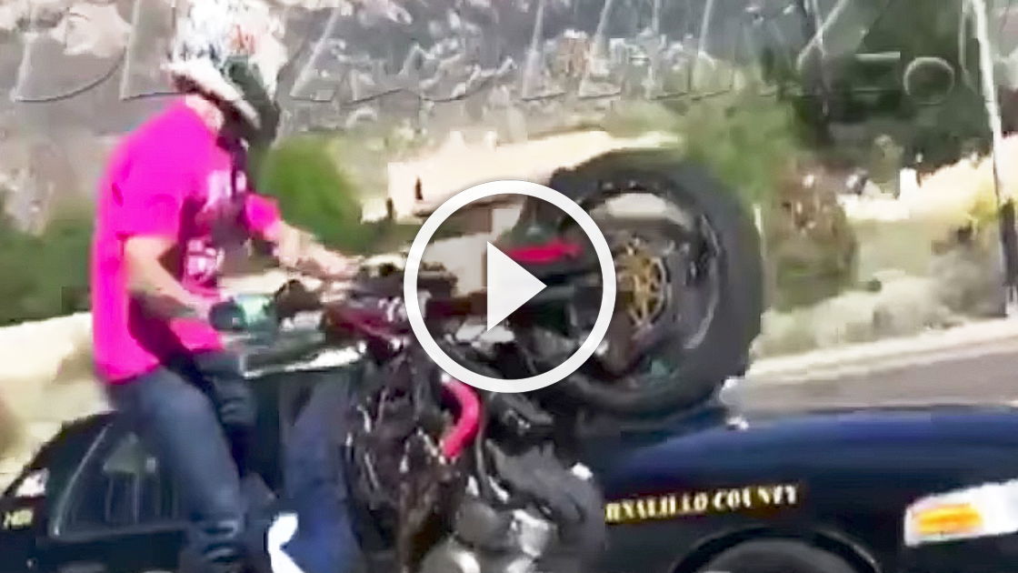 Regardless of this, is aiming a gun at a wheeling motorcyclist really necessary? It could have just as easily caused a crash...