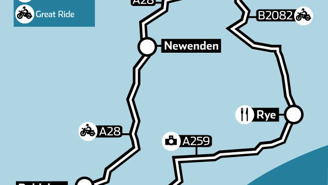 In Rye you'll find a lot of bikers parked in the quayside car park - there's a few pubs and cafes dotted around so it's a good stop. And my missus likes it here too, it's got a castle and stuff if that's your thing.
