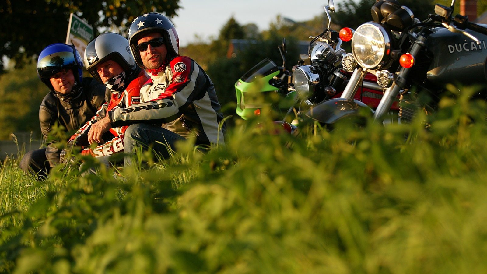 It was clear, though, that none of the bikes really disappointed when it came to scratching. Yes, you had to employ various tactics to get the most out of each, but you had fun all the same. Evil said he actually had more fun on these than modern bikes, on account he was riding closer to the bikes' limits rather than his own, which was fun as against scary.The ride back from the Bol was as reflective as a ride can be taken at 105mph with one hand on the forkleg, still. A series of roundabouts again showed that for all the utility of the fours that damn Guzzi could still flick through a chicane faster than any of them - as long as you didn't hurry the gearbox. A long stretch of motorway showed that the Honda was still the inter-city coach of choice, helped by its superior tank range. Conversely, despite having the best fuel consumption the Ducati had the least range. Barely five miles short of Calais its luck - and tank - ran out, necessitating an appallingly haphazard attempt at towing that nearly saw not only the Duke but the Guzzi spread across the road. The Honda saved the day, sent off on one of those fill-the-soda-bottle-and-return rescues.Three out of four testers said out of the group they'd buy the Ducati first. The fourth tester said he would too, but could never ever see the day he'd have the money to buy a new bike and besides, he'd really want the suspension sorted if he was to splash out that much dough.