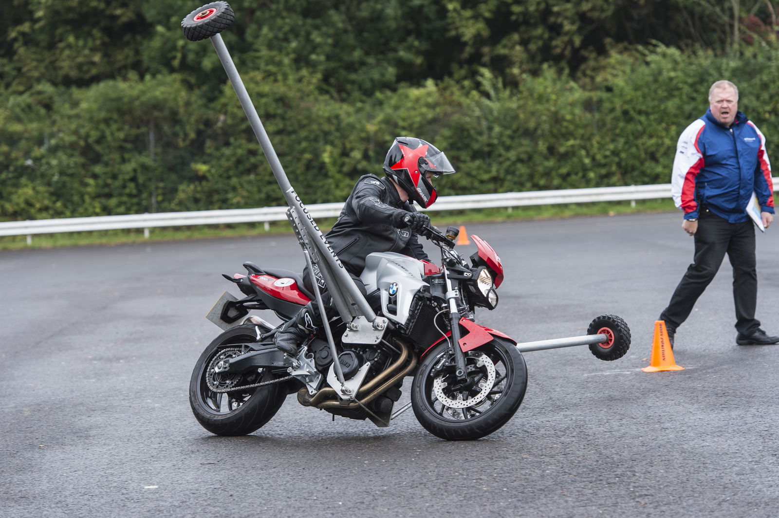 The other exercise bike, the F800R with poles on, is used to show how throttle and rear brake can be used to help turn. This time the tuition was from Kevin Healy, owner of Focused Events, which runs the BMW training day.