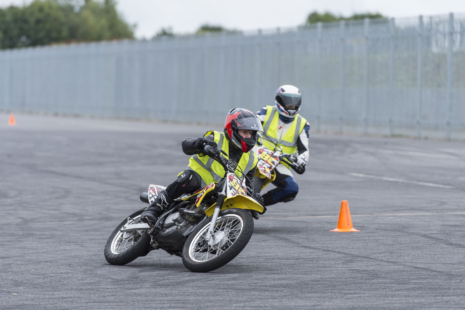 I’ve always been a bolt-upright sort of rider. The low speeds, open space and small bikes, obviously on road tyres, removed any apprehension about hanging off.