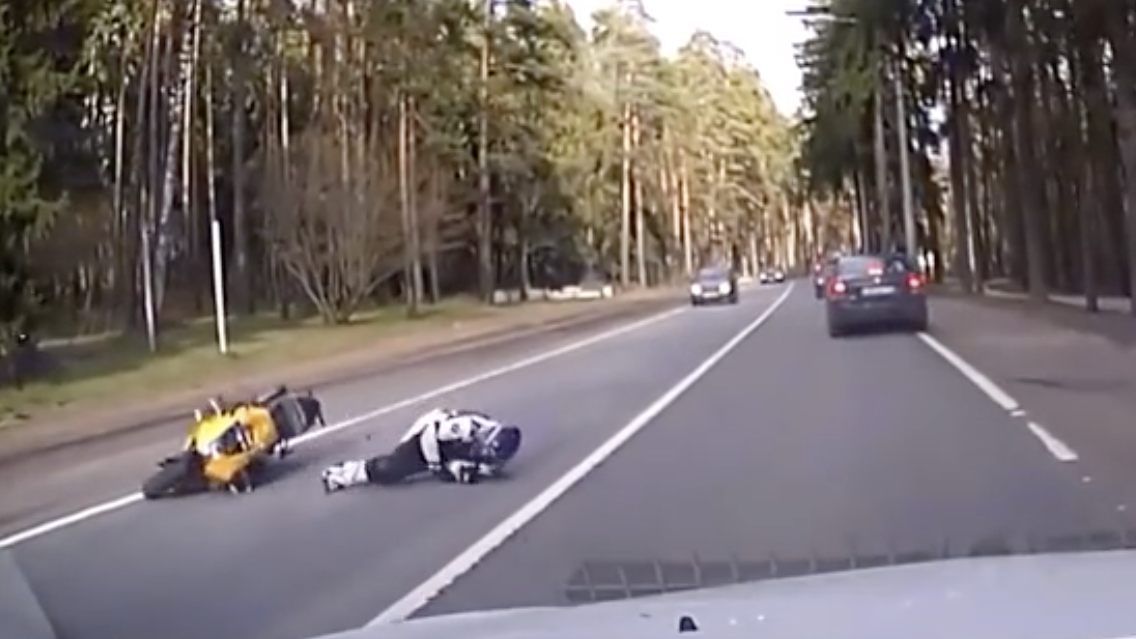 A viral video has captured the moment a motorcyclist is hit by a flying object on a busy road