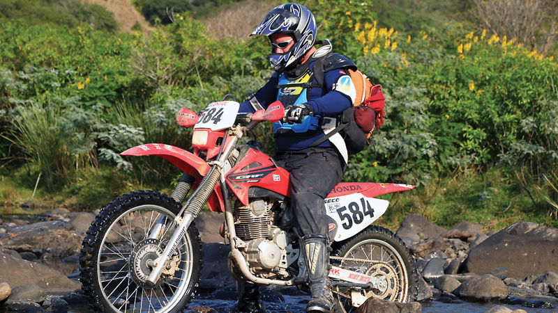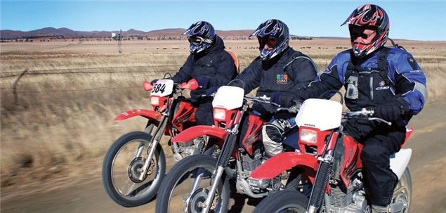 The British away team on this recce is Enduro Africa's UK manager Simon Smith, team leader Jules Brooks and myself, while the South African home squad consists of Dave Ogden, Mervyn Woods and Mike. Dave and Mervyn, weathered old men with decades of hard off-road riding under their belts, observe us pipsqueak Englishmen with the contempt we deserve. We're using brand new Honda CRF230s for the ride, a mild,