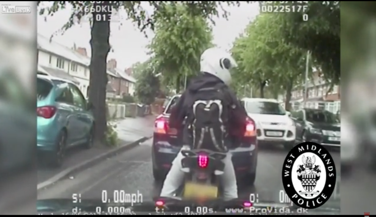 Man on phone whilst riding a scooter falls into huge sinkhole