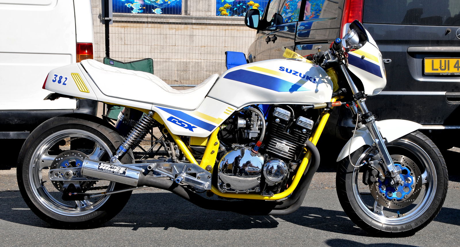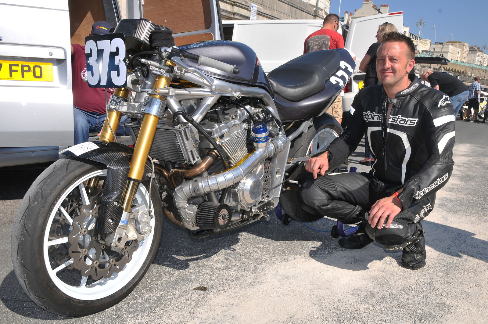 This long and low Suzuki GSX1100 is a veteran survivor of the much-missed Ultimate Streetbike Series drag race world of the late 1980s and early 90s. It's now fitted with an ex-Paul Giddings 1,428cc big block motor stuffed with all the usual goodies, a nice long swingarm and a Vance&Hines race pipe giving 170bhp, increased to 240 ponies with a good dose of nitrous. Jeff's best time on the day was a creditable 10.06 secs giving him fifth place.