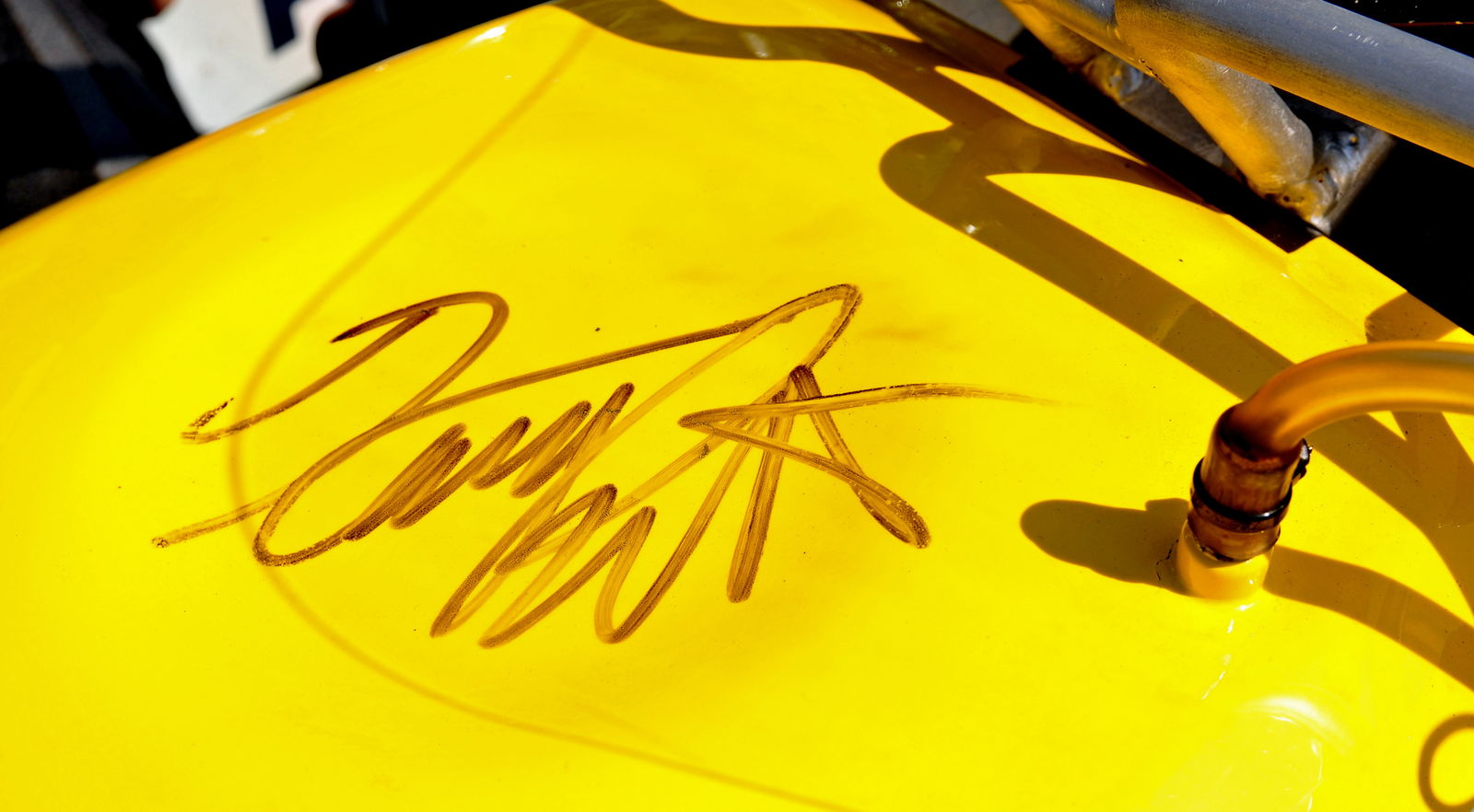 Catching plenty of admiring glances in the paddock was Des Lindsey's eyeball-blistering road legal Kenny Roberts rep Yam LC500. Plenty of time and no little skill has gone into that GP bike look. The petrol tank is made up from sections on LC500,FZR600 and R6 painstakingly welded together covered in glorious Yammy Yellow and to top it all, literally, the autograph of the King himself which was signed at Goodwood giving the bike the ultimate seal of approval. An R6 front end is matched to a rear hoop suspended in a much-modified R1 swinging arm and Bill Lomas exhausts add to your ocular damage by taking your ears out too. Not a bike for a shy rider!