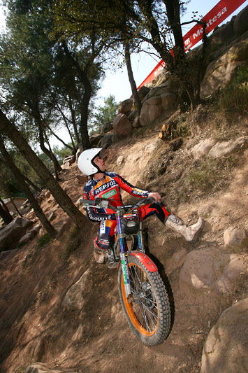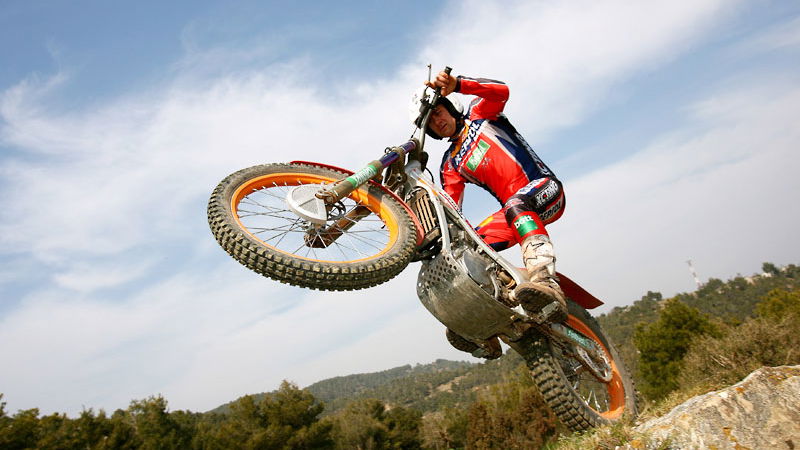 If any top trials rider was to go to a circuit to test a race bike they would easily be able to get round. The only difference between them and a top racer would be far slower lap times. In trials, on the other hand, for a novice to attempt any of the sections the pros can clear would be tantamount to suicide. You can either do it or you can't. There's no in-between.