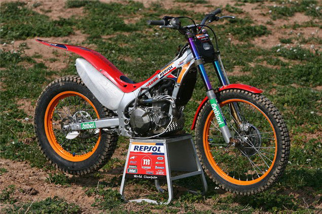 The Montesa-Honda Cota 4RT is a 270-ish cc (the factory won't confirm it's true capacity), fuel-injected four-stroke. And make no mistake, this is a proper factory bike. You'll get some idea of how important this project is to Honda when you consider the only other two-wheel motor sport they're involved in that receives full factory backing is the company's MotoGP effort. Honda hopes the technology pioneered in developing a four-stroke bike capable of winning in the two-stroke dominated trials world will have spin-off benefits in many other applications.