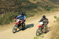 Our Test area consists of a very steep wooded hillside full of huge and dangerous-looking boulders. Trouble is, to get to it you have to ride up a narrow gulley full of rock steps then along a path with an un-fenced 25-foot drop inches from your wheels. The six other publications invited to take part are pure off-road magazines, but I can't even get the bike out of the car park without help.