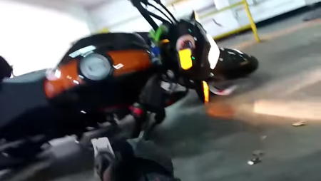 But to be fair to the learner rider, even though his bike was dropped and he was left staring at the ceiling, he still managed to keep hold of his car park ticket.