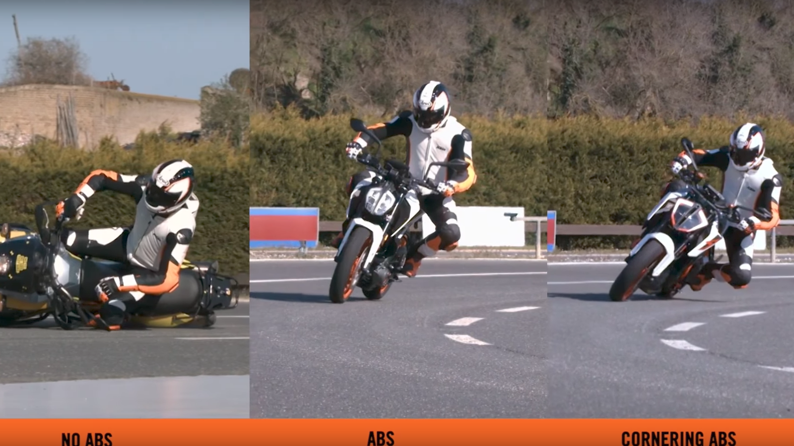 KTM have been so kind as to create this video demonstrating the differences between bikes with ABS, Cornering ABS, and those models with none at all.