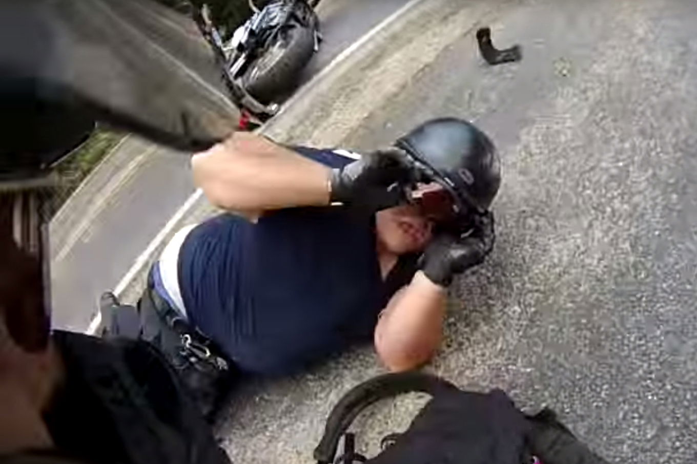 THERE is something so satisfying about this video - particularly for any biker who has nearly been side-swiped, T-boned or rear-ended by a driver yapping away obliviously on a mobile phone.