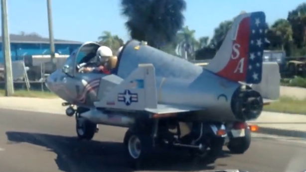 Starting life as a Honda GoldWing, Ron Galloops modified the bike to take on the looks of an F-106 Delta Dart jet fighter. It has a a glowing afterburner installed and will hit a top speed of 80mph.