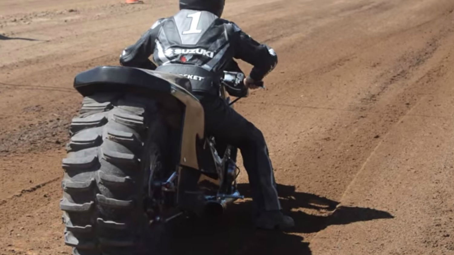 We've got serious respect for these drag racers at a recent meeting in the USA who keep the throttles pinned despite the rear wheels snaking wildly on the loose surface.
