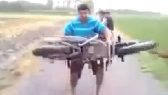 WATCH: Man lifts motorcycle above his head