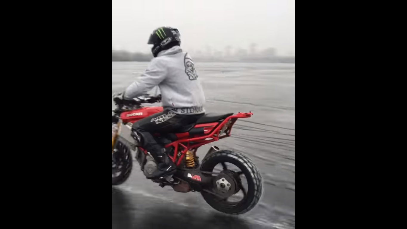 FED up with too much ice everywhere in the coldest week of winter so far? This Russian Ducati Multistrada rider has the opposite problem.