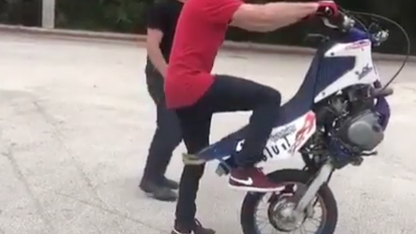 Watch: Ride attempts to wheelie bike with no front end