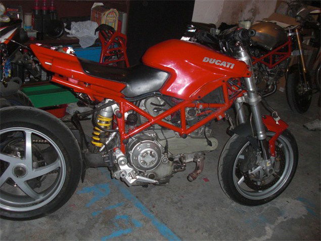 Created from a Multistrada 1000 rolling chassis, the Hyper Evo Testastretta uses the engine from a 1098S. Just look at it - a decent shoe horn would have been needed to get that lump in there. Infact the guy building it had quite a job to fit the motor in there, having to cut the frame and change mounts just to fit the engine in, then there was the small case of finding room for the radiator.